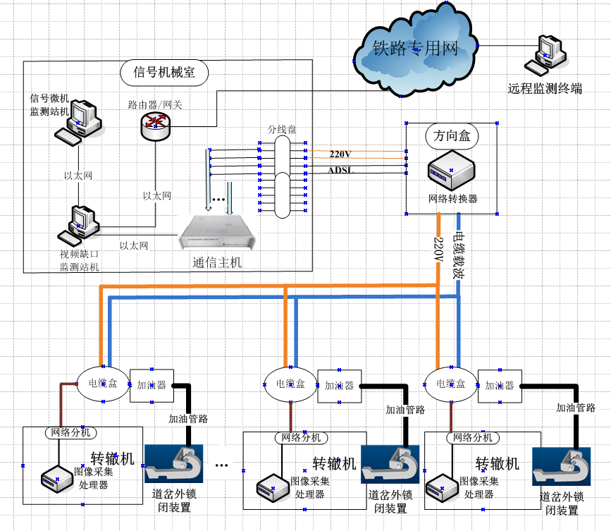 道岔外锁闭加油装置DY-2型载波式加油器是我公司在道岔缺口监测系统产品的基础上,精心设计,专为道岔外锁闭装置自动加油的设备。该系统能够与道岔缺口监测系统共用线路,兼容系统软件,还可以独立成系统工作。系统能够自动定时或人工远程控制为道岔外锁闭装置加油,保持道岔外锁闭装置钩锁组件良好的润滑状态,减少和避免因润滑不良原因造成道岔外锁闭发生机械故障,提高转换道岔的可靠性,延长其使用寿命。系统应用后可实现减少维护人员上道作业时间,节省人力物力,为保障行车安全给予了新的高科技手段。